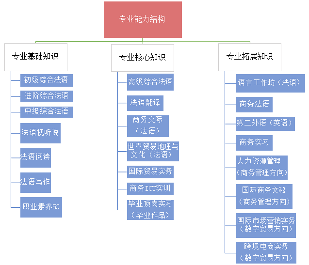 深圳职业技术学院法语课程开设于2002年,2006年应用法语专业正式成立。作为市场化需求的产物,我校应用法语专业从开设之初就以语言实际应用为着眼点,以“法语语言能力+职业技能+职业素养”为核心,面向现代服务业相关领域,培养扎实掌握本专业知识和技术技能,能够从事翻译、电子商务、国际贸易、行政助理等现代服务业等与法语相关一线工作,具备一定的人文素养、科学素养、创新意识、工匠精神、批判思维和较强的就业创业能力、可持续发展能力与国际视野的复合式、创新型、高素质技术技能人才。