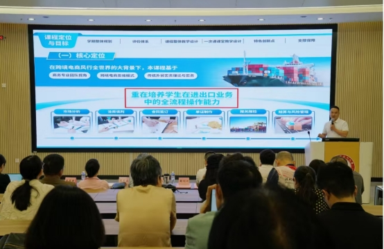 会上,公共外语部骨干教师梁蔷玫展示了公共英语教学中的“AI双向赋能”,通过构建动态评估听力网站、智能测评系统与互动平台,个性化支持与激发学生学习自主性,实现了AI赋能“教”与“学”在智慧教育中的全面化与个性化。跨境电商专业骨干教师倪坤结合跨境电商案例,解析“进出口业务”任务驱动式课堂教学,通过TEDI模型、启发式教学、项目化教学,实现了学生从“被动接收”到“主动建构”的转变,契合数字贸易时代对复合型外贸人才的需求。应用外语专业(韩语)骨干教师朴铃一通过对比中韩《乡愁》的诗歌与音乐等,创新构建了“东亚流行音乐赏析”课堂四维美育模式。