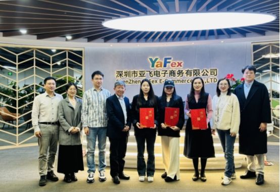 活动伊始,亚飞公司致欢迎辞,刘建珠代表学院致感谢辞,指出了校企协同育人对服务区域经济发展的重要意义。座谈会上,邓灵昭详细介绍了我校跨境电商和国际商务专业的发展现状与特色成果;王双喆围绕企业业务板块及人才需求进行专题分享。双方就实践教学基地运行、校企人才联合培养与输送、专业课程共建、校企师资共建等议题展开深入探讨,初步明确将举行定期会商机制,围绕海外市场实战课程开发、企业导师进课堂、小学期课程、AI技术赋能跨境电商等话题探讨长期深入合作方向。