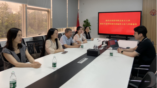 6月4日,商外学院副院长(主持工作)刘建珠,公外部第二教研室主任刘爱容,公外部青年教师刘婕、雷婕、谢旦旦、刘美隆等一行6人赴科大讯飞深圳分公司开展校企合作调研。科大讯飞广东大区高级客户经理张宇哲热情接待了刘建珠一行。