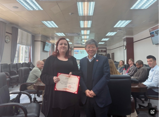 会议伊始,刘建珠致开幕词,表达了对各位外教的欢迎和新学期工作的期望,并为Rebecca Jayne McClughen颁发了2024年度高等院校外国专家国际合作奖,以表彰她自2019年以来超过3000小时的教学贡献与卓越成就。