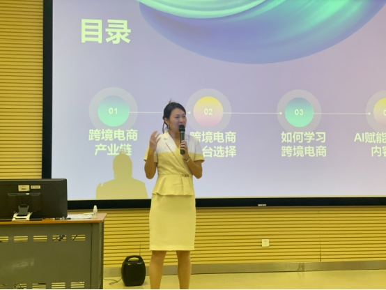 “跨境电商人才需要构建复合型知识体系”。李延婷特别建议同学们强化外语应用能力,注重国际贸易规则学习,同时培养数据思维与创新意识。她通过互动问答形式,解答了学生关于职业认证、实习实训、创业孵化等方面的具体问题,现场气氛热烈。