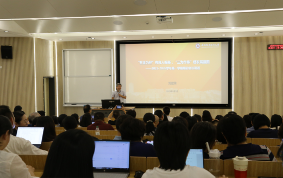 随后,刘建珠作了题为《“五金为经”夯育人根基,“三为作纬”绣发展蓝图》的新学期动员讲话。他从何为“五金”、“三为”出发,进行了暑期工作回顾、新学期工作部署和未来工作展望。暑期学院师生攻坚突破见“敢为”:跨境电商专业首次招生,世界职业院校技能大赛争夺赛摘金,省创新大赛夺金,访企拓岗结硕果,教学竞赛斩殊荣。新学期工作精细谋划践“善为”:树立理念锚定人才培养新方向,课堂改革打造教学实践新高地,产教融合构建协同育人新生态,师资建设锻造专业教学新梯队,质量监控对标“五金”新基建,服务发展拓展学生成长新空间。未来工作蓄力奋进求“有为”:与“时”俱进,以内容迭代重构课程体系;与“势”俱进,以资源整合深化产教融合;与“是”俱进,以教育本质重塑育人生态;与“实”俱进,以项目实战解决纸上谈兵;与“使”俱进,以育人使命成就卓越自我。